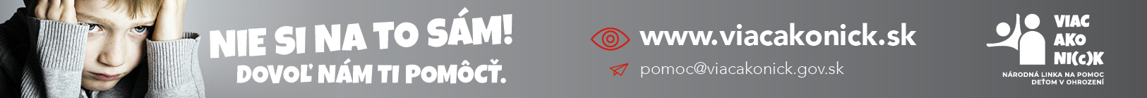 Násilie, s ktorým sa deti stretávajú, môže mať veľa podôb. Od šikany, zosmiešňovania, ponižovania, kyberšikany cez vyhrážanie, bitie, týranie, či sexuálne násilie. Ochrániť ich dokáže len rýchly a účinný zásah. Takúto pomoc deťom ponúka Národná linka na pomoc deťom v ohrození VIAC AKO NI(C)K. Je bezplatná a funguje nepretržite 24 hodín denne/ 7 dní v týždni.